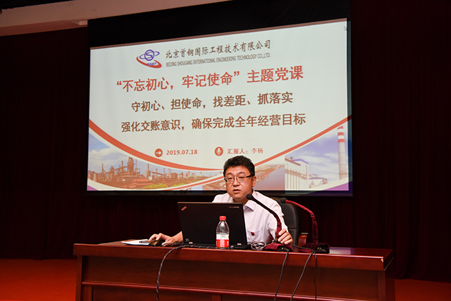 7月18日下午,首鋼國際工程公司2019年公司半年工作總結會在公司十四層學術報告廳舉行。公司黨委書記、董事長李楊主持會議并做題為《守初心、擔使命,找差距、抓落實,強化交賬意識,確保完成全年經營目標》的“不忘初心,牢記使命”主題黨課報告,公司黨委副書記、總經理侯俊達出席會議并做2019年公司半年工作總結會總結,公司副總經理李長興,公司副總經理張建,公司紀委書記、工會主席陳國立,公司副總工李永忠、向春濤、王兆村、寇彥德、趙嘉康,公司全體中層領導80余人參加了會議。會上,冶金工程、建筑市政、能源環境分公司,組織人事部,運營管理部,計劃財務部,綜合管理部分別匯報了上半年工作情況。