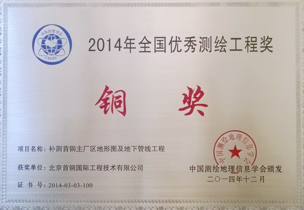 獲得2014年全國優(yōu)秀測繪工程銅獎(jiǎng)